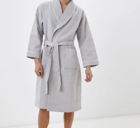 Халат унисекс серии "Герман выполнен из вафельной ткани на основе 100% хлопка, что обеспечивает изделию экологичность, гипоаллергенность, отличную воздухопроницаемость и гигроскопичность. Халат одинаково подойдёт как мужчинам, так и женщинам.