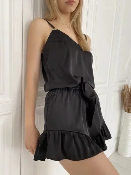 Женская пижама с бельевым топом и шортами (черный)