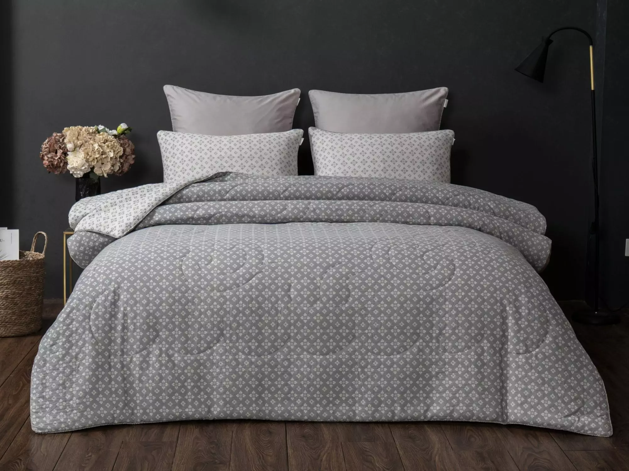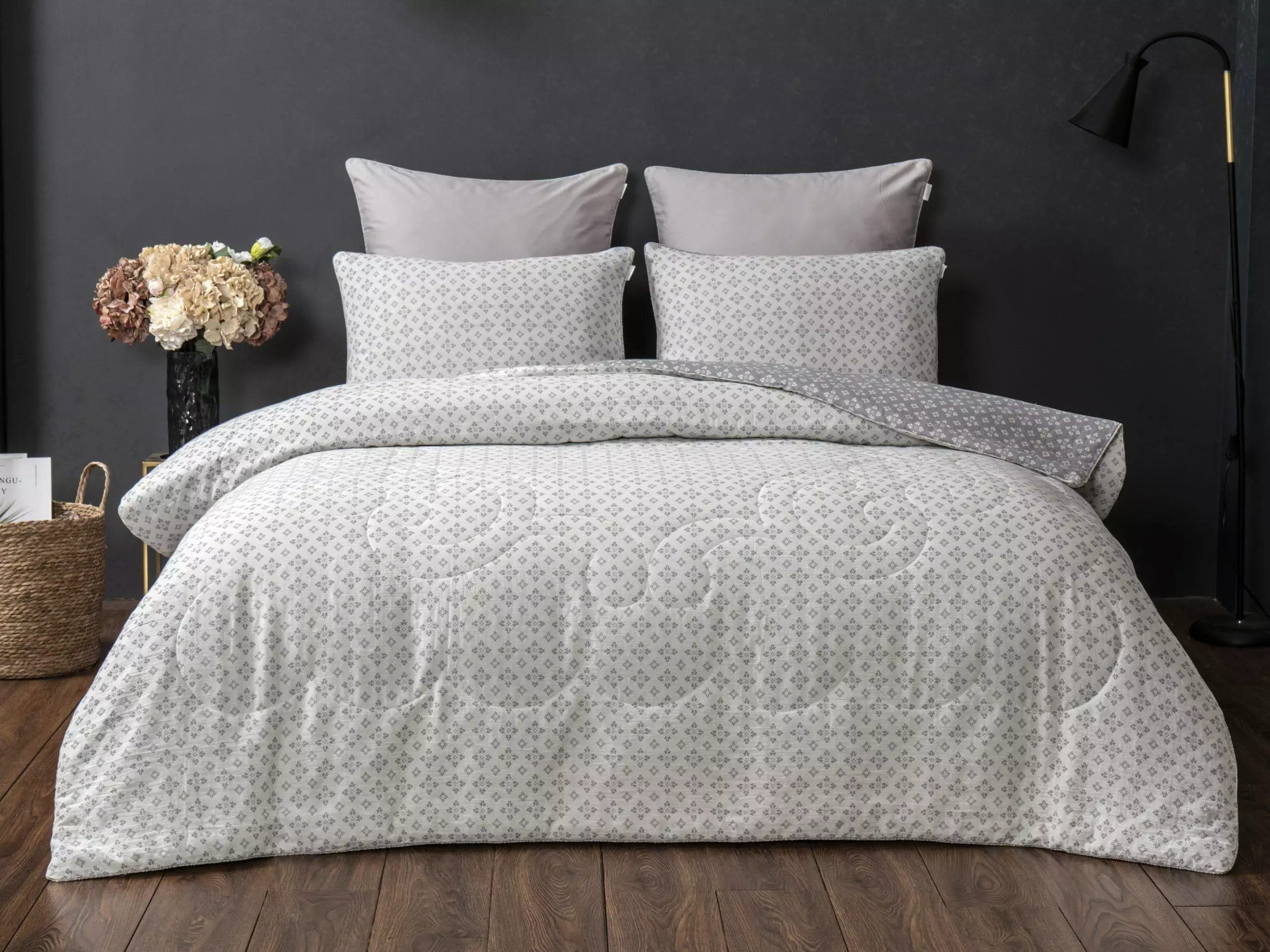 Комплект постельного белья “Кемер” (серебро беж) от известной текстильной компании “Kazanov.a” с всесезонным двусторонним одеялом, которое не надо вставлять в пододеяльник.