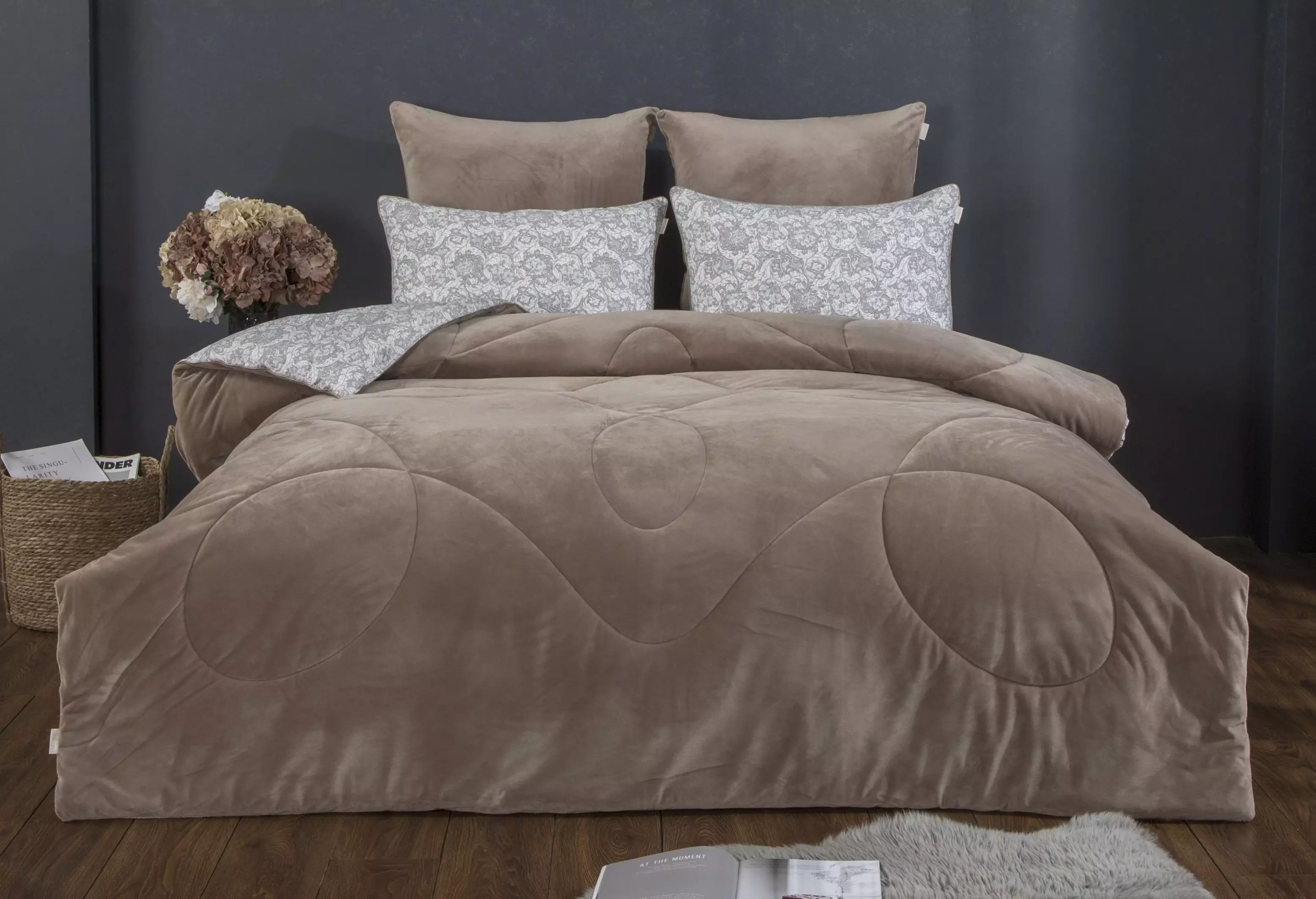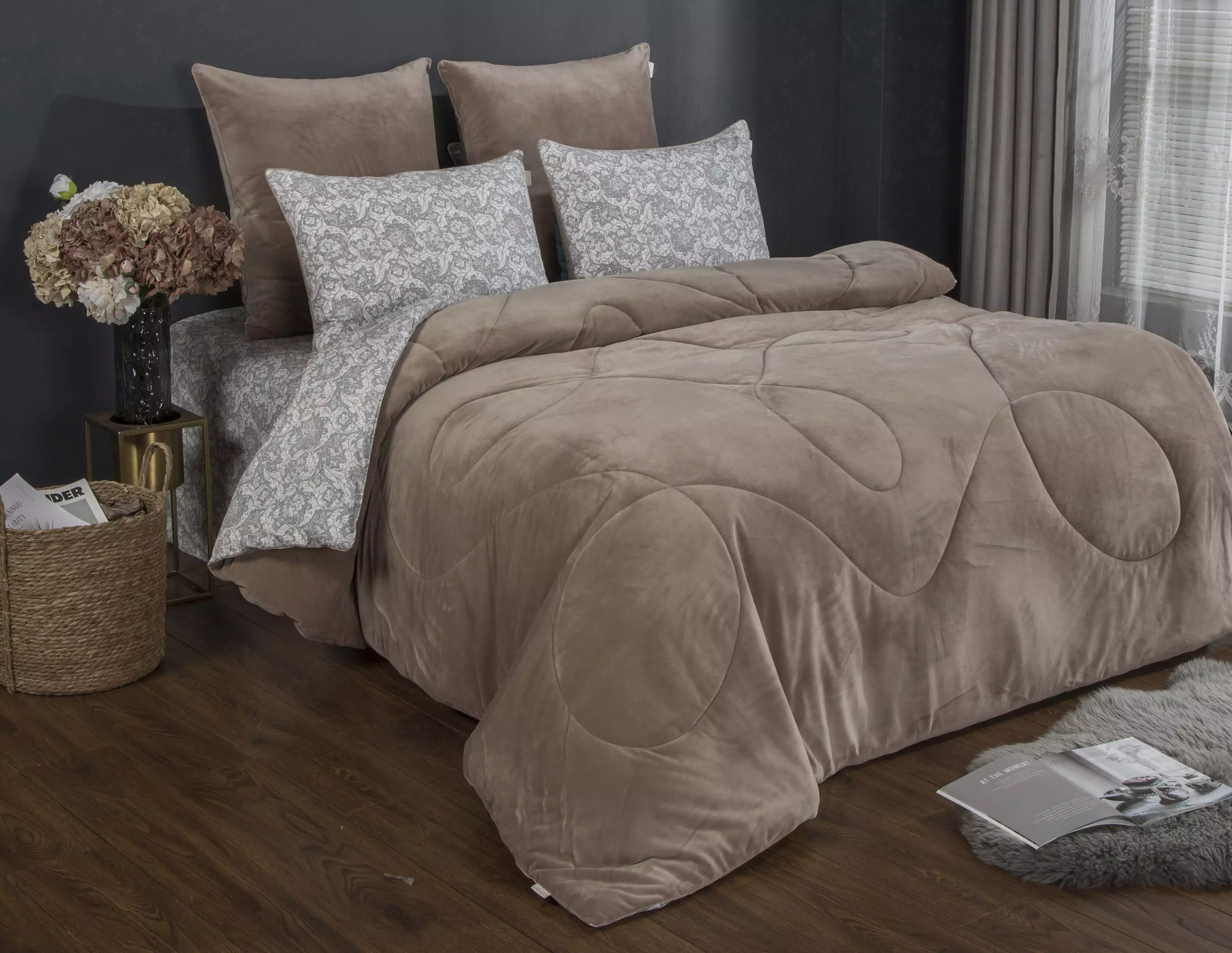 Комплект с одеялом KAZANOV.A “Остин” бежевый платина (хлопок-велюр), евро
