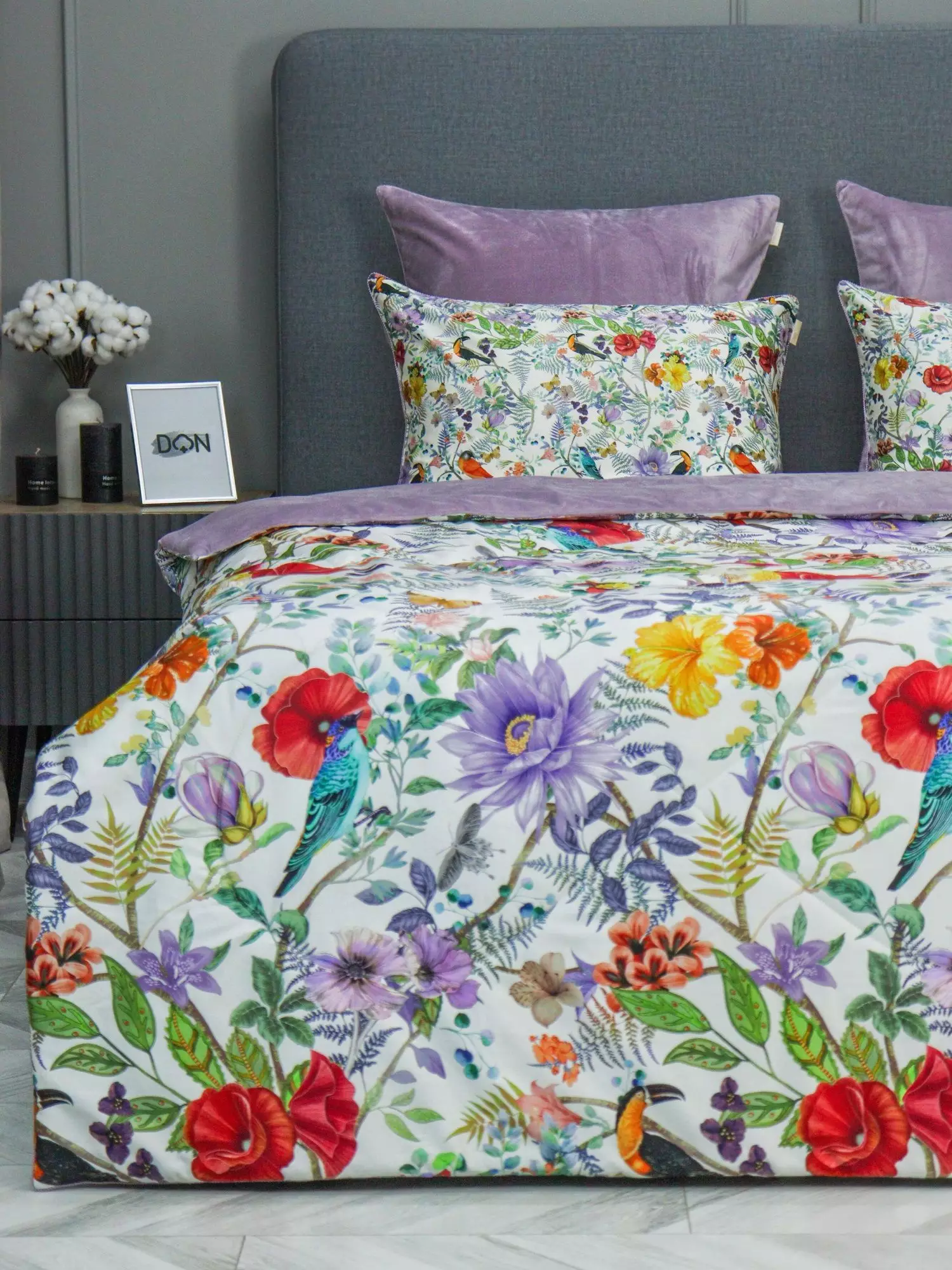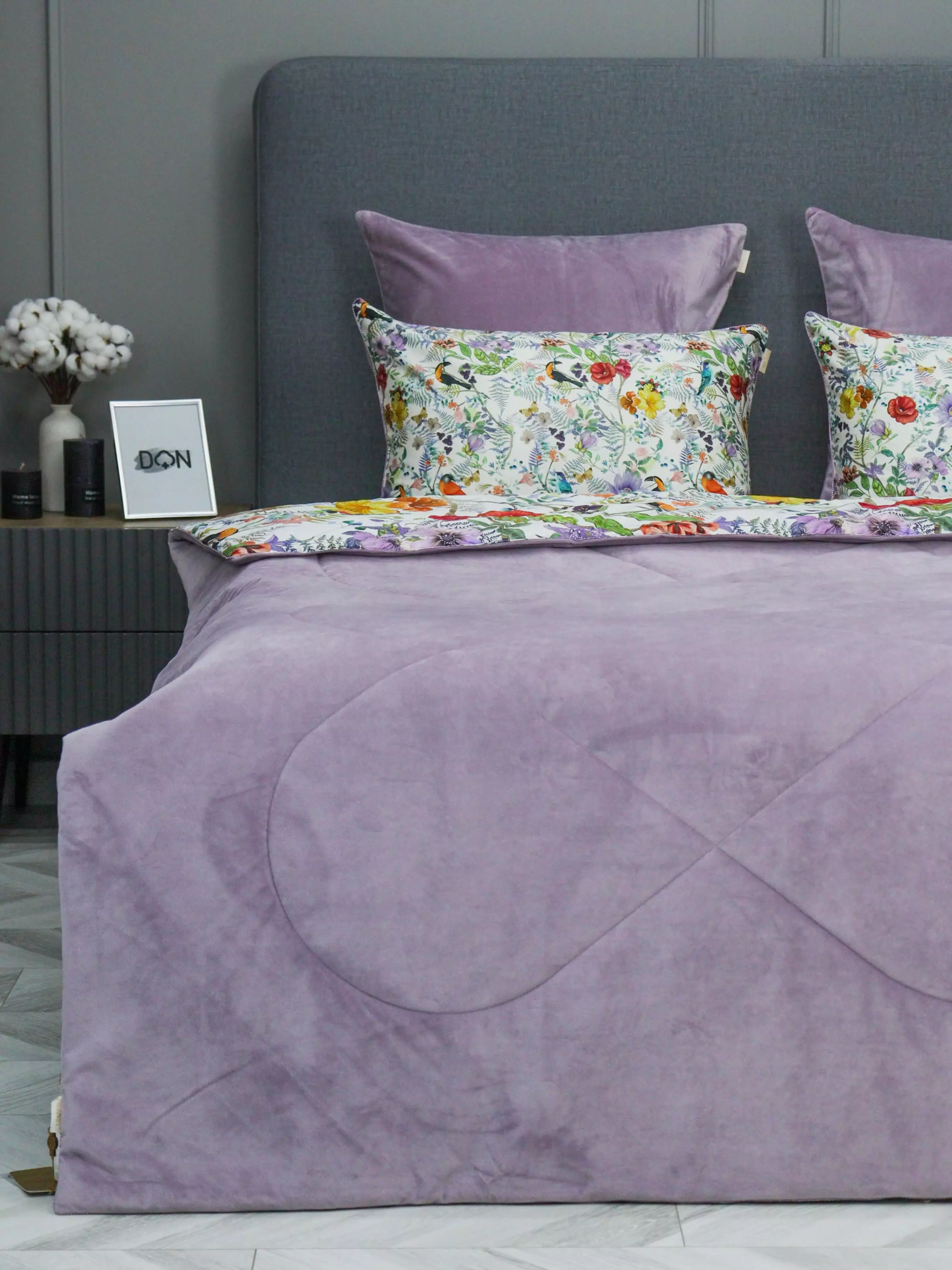 Комплект с одеялом KAZANOV.A “Маки” жемчуг лаванда (египетский хлопок-велюр), 1.5 спальный