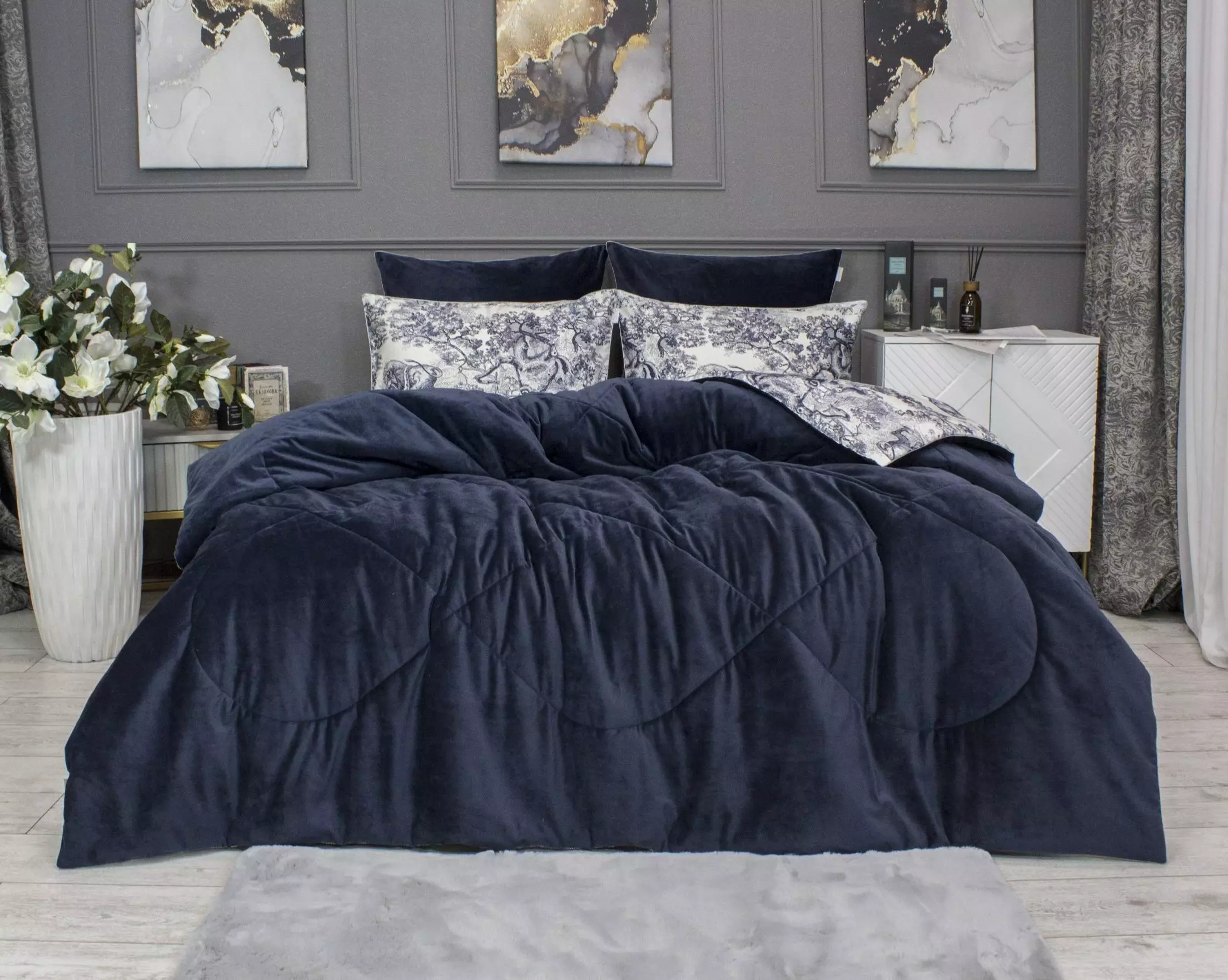 Премиальный комплект постельного белья с одеялом “Нала” индиго жемчуг коллекции «Сатин-Велюр» от известной текстильной компании “Kazanov.a” отличается безупречным пошивом и высочайшим уровнем качества.