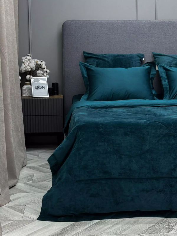 Египетский хлопок и велюр — два лучших материала, которые создают гармонию между роскошью и практичностью. Вторая сторона одеяла из велюра превращает его в универсальное решение: днём оно служит стильным покрывалом, а ночью — уютным и тёплым коконом.