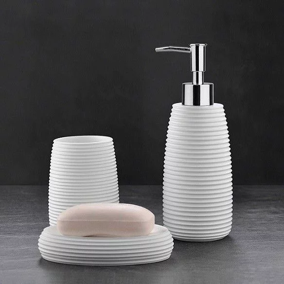 - Комплектация: Дозатор для жидкого мыла (1 шт), Стаканчик для зубных щеток (1 шт), Мыльница для твердого мыла (1 шт)